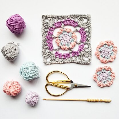Viola is a granny square with a lot of personality. It can be used for blankets, cushion covers and even clothing. It's delicate and has a floral vibe to it.