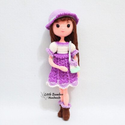 Written in English using US terminology. Suggested Materials & Tools: • 4 Ply Acrylic / Milk Cotton Yarn - Light peach - Light green - Light purple - White - Dark purple - Brown • Fiberfill or cotton • Crochet hook size 2 mm • Soft wire • Black safety eye 8 mm ( 2 ) • Hook and eye ( 4 ) • Purple bead 6 mm ( 1 ) Size: about 30 cm Skill level: INTERMEDIATE