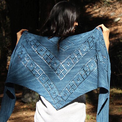 Violet Ravine is a classic shawl with pretty lace center.