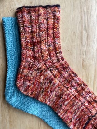 Available in 3 sizes: Adult S (M, L): to fit 7.5 (9, 10.5)“ /19 (22.5, 26) cm foot circ with ~ 1”/2.5 cm negative ease