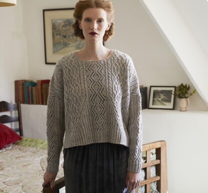 VITA is a stunning lace, cable and twisted stitch design from Marie's BLOOMSBURY collection. It is knitted flat in pieces and is an oversized shape.