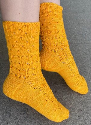 The theme for this year is the Seasons; this pattern is inspired by Vivaldi's Four Seasons concertos. The sock has four lace patterns each inspired by one season: Spring, Summer, Fall, & Winter.