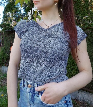 This top is so easy to wear and great as an everyday staple to your closet. The texture is beautiful and relaxing to create. This top will look great as a longer top or long sleeve top. I find it easy to wear in any season.