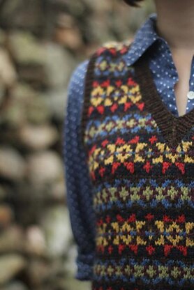 Voe Vest worked entirely in the round is a great quick fair isle project using DK weight yarn.