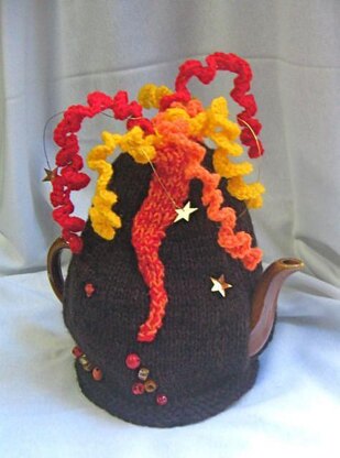 A Volcano cosy to keep your tea REALLY hot! Easy to make, and fun to embellish – with beads, stars, and any bits of molten rock you might have around...
