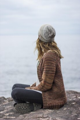 Voyageur is a top down, raglan with a satisfying all over body texture. Bulky yarn and large needles = a quick knit that promises warmth.