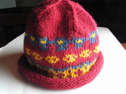 An easy and fun stranded hat in three colors of worsted yarn. This is a variation of the Madison’s Hat pattern, and a great next step if the Madison’s Hat was your first stranded hat. The yellow stitches on the top section make little W’s, hence the name.