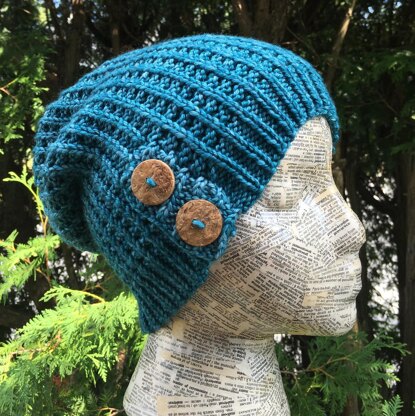 Featuring a slip-stitch waffle pattern that creates a very warm fabric, this hat is sure to stylishly keep your ears warm all winter long.