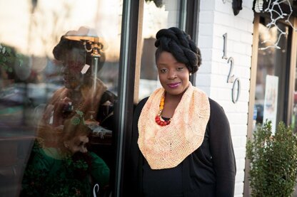 The slow, even, ever-expanding curves of this stitch pattern are inspired by the steam wafting up from a fresh, hot cup of coffee. This cowl used a combination of increasing techniques, and changing needle sizes to achieve a slightly flared outer edge that drapes fashionably around the shoulders. New knitters will have the opportunity to see how needle size affects gauge and drape and other fabric characteristics. Yarn is held double throughout, creating a very squishy and comfortable texture to the piece.