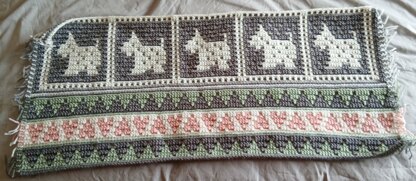 «Wags & Wiggles» is done using mosaic overlay technique. If you want to give it a special touch you can use some mosaic tapestry too. The pattern has step by step pics to guide through mosaic tapestry and you can also follow my videos on my YouTube channel (One Skein of Love) about this technique.