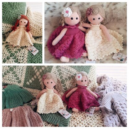 Skill level: Intermediate Stitches used for doll include sc, inv sc dec Stitches used for clothing include ch, sl st, sc, hdc, dc, cluster, hdsl, knit-look rib stitch