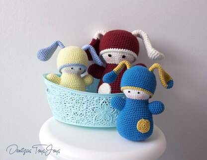 • Crochet hook N 3 • DMC Natura Just Cotton yarns. Colors: light blue, yellow, white • Toy stuffing • Stitch marker • Tapestry needle • Pink blush • Beads for eyes