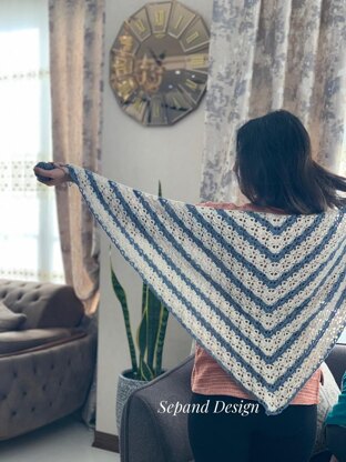 Sizing: 80cm deep x 163cm wide Yarn: The Fibre Co. Luma (DK; 125m per 50g skein; 50% Merino wool, 25% cotton, 15% linen, 10% silk), 5 balls in Blanca LUM 280 (MC), 4 balls in Stonewash LUM 130 (CC) Tension: 11 sts x 10 rows = 10cm measured over tr Hook: 3.5mm Skill level: intermediate Other supplies: stitch marker.