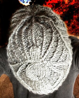 Perfect for costumes for kids or adults or when you just need a stylish spider warmly clutching your cobwebbed head, this slouchy beanie is knit in-the-round from the bottom up with an overall cabled spiderweb pattern. Lying in wait on her web is a large and spooky cabled spider courtesy of Barbara G. Walker's Charted Knitting Designs: A Third Treasury of Knitting Patterns.