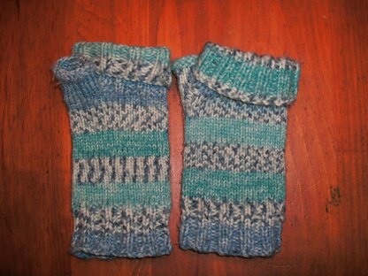 The mitts are knit so they can be folded over or unfolded for very cold weather.