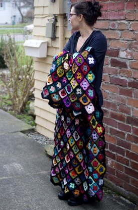 Worked with worsted weight yarn, this project is a great stashbuster, but would look equally arresting in two or three colours. Though made up of hundreds of little squares, the Wallflower works up quickly, and joining motifs is made simple due to their orientation. A simple border adds the perfect finishing touch.