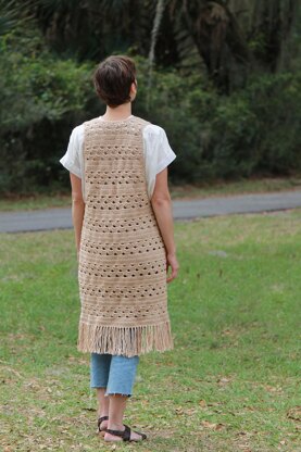 ABOUT: The Wanderer Vest is a boho-chic layer designed for the fashionable explorer! This unique, sleeveless cardigan is filled with airy, arcade stitches, flattering shaping, and is worked from the top-down, so you get to try it on as you go and easily determine the length that works best for you. Plus, the only seaming required are the top shoulder straps! THAT'S IT.