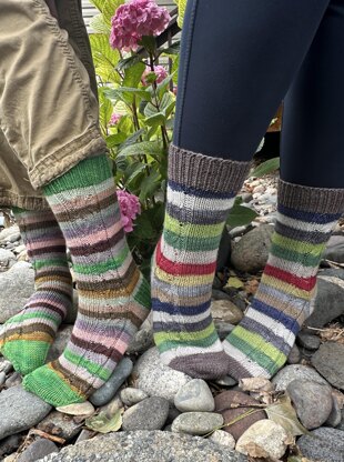 I was looking to design a fun detail to add to self-striping socks. I chose to use this fun faux cable pattern that wanders up the outside of each leg. There are instructions for both the right sock and the left sock. The chart is used by both socks. Chart and written instructions for chart found on page 3.