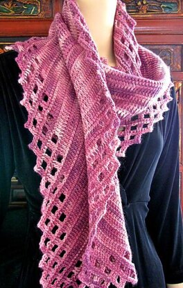 Start this rectangular scarf in one corner and crochet it on the bias to the opposite corner. The special “filet lace”-style edging is crocheted as you go.