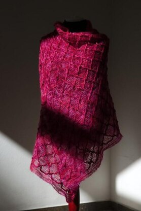 The wrap is worked with slip stitches. They feature my technique of horizontal cables - all over the place. Still, the pattern repeat is easy to memorize and the pattern becomes addictive after a while.