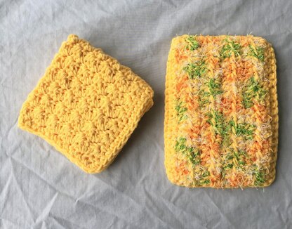 This pattern is quick and fun. It makes a great sponge for washing the dishes. It is reusable, when the sponge gets dirty toss it in the washing machine and dryer with your regular laundry. The washcloth and sponge make a nice matching set. great for gift giving.