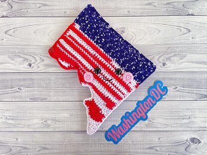Our finished Washington DC Kawaii Cuddler® is 11″ x 11". Hook size, yarn choice, and crochet tension will affect each individual result.