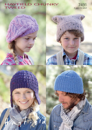 Watch Cap, Helmet, T-Bag Hat and Beret in Hayfield Chunky Tweed - 7491 - Downloadable PDF