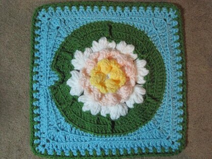Floral granny with a multilayered lily sitting on a lily pad. Some challenging stitch construction but give it a try. Support at the Julie Yeager Designs Ravelry group. Please post photos of your finished work - I would love to see it.