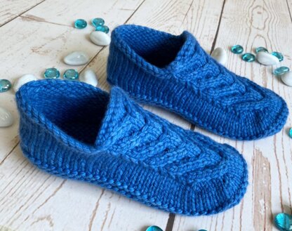 The Waterfall Loafers are knit from the ankle down and incorporate heel, toe and sole shaping to ensure that they are comfortable and stay on.