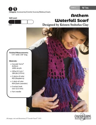 Waterfall Scarf in Cascade Yarns Anthem - W746 - Downloadable PDF