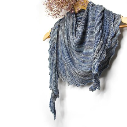 An asymmetrical shawl with stocking stitch ridges echoing sand ripples created by lapping water.