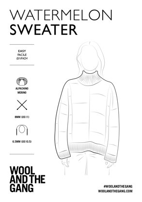 Watermelon Sweater in Wool and the Gang Alpachino - Downloadable PDF is a free Beginner Knitting pattern by Wool and the Gang, available as a Downloadable PDF and includes instructions in English, French, German. Super fun to make, this pattern could be your next masterpiece!
