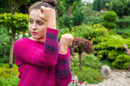 - The pullover is meant to be worn with 1 – 2” /2.5 – 5 cm/ of positive ease. The sample is shown in size M worn with 2” /5 cm/ of positive ease at bust