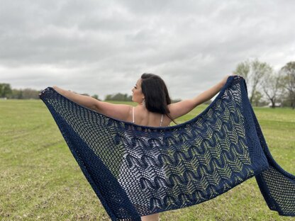Pattern is worked flat, meaning you will turn for every row. It is also constructed from the bottom up in rows using circular needles to hold the weight of all the stitches; this wrap has garter edge sections for a more finished look, traditional lace sections for meditative knitting, and one centered wave pattern lace section to be a nice surprise pop in the back.