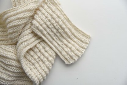 A reversible ribbed pattern knitted lengthwise with three scarf lengths - 72", 84" and 108" long. All scarves measure just under 7" wide.
