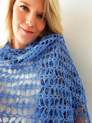 For all its elegance, Waverly is made using just three crochet stitches—double crochet, chain, and slip stitches—and shaping takes care of itself. Alternating shell panels move like leaf fronds playing in the wind to create pretty lace paneling in a rectangular wrap. Changing the yarn completely changes the look of this design and makes this an enjoyable project to crochet and wear all year round.