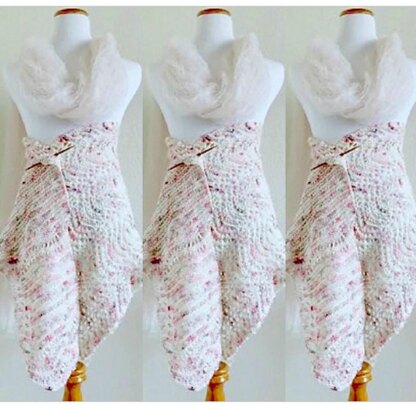 Beautiful flow and lots of interest in a not at all complicated design. It seems like waves are coming and going. Because of its unusual shaping this shawl can be worn many different ways. Shawl is knitted on circular needles back and forth.