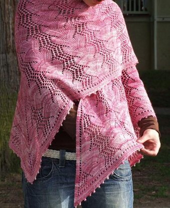 The unique shaping of this beautifully patterned shawl ensures a comfortable, stable fit.The shawl consists of three equal sections of graceful “Print o’ the Wave” and a beaded picot border. Pattern is both written out and charted, and consists of 8 pages.