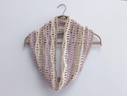 I've used Caron Cotton Cakes for his cute circle scarf, it is nice to the touch and not too heavy. But you can use any worsted weight yarn for the pattern or use several yarns for stripes if you don't mind sewing in ends.