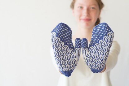 A graphic wave pattern set beneath a starry sky adorn these lightweight colourwork mittens. This motif is one that I love, it is painted on my bedroom wall, the first thing I see when I wake up.