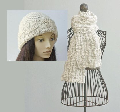 Two patterns for the price of one. A pretty hat and matching scarf in an interesting ribbed wave pattern. The pattern is not difficult and is appropriate for knitters with basic skills. The hat is worked in the round.