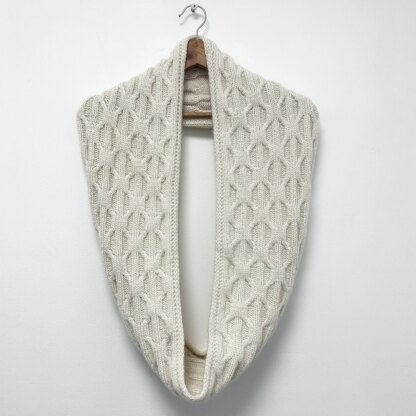 An instant classic to match the hat, 'Wavy Stream' is a unisex cabled (loop) cowl. Shown here in a soft, chained yarn by Woolfolk.