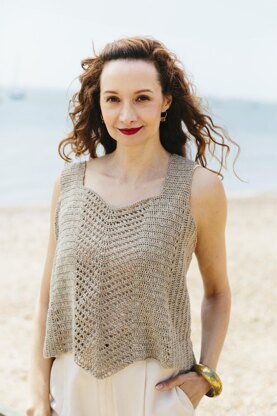 Available in four sizes, this pretty swingy vest top features a favourite lace shale pattern for natural shaping in beautiful natural linen blend yarn for soft drape.