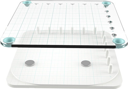 Precise stamping every time! Use direct downward pressure for even, perfect stamping. Package includes mat, extra-strong magnets, acrylic stamping block, and stamping base. Rotate the acrylic block to utilize all four corners. The open edges accommodate 12 inch paper. The rubber corners provide the even stamping pressure. This 10.5x11.5 inch package contains one 8.75x7.75 inch acrylic stamping block and foam pad with six inch grid and two magnets. Imported.