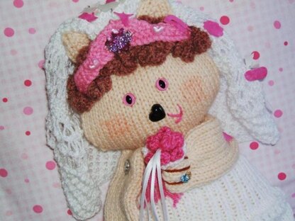 With a couple of Royal weddings coming up this year I thought I would re issue this Kitty Bride. WEDDING BELLE is an easy doll to knit and she will be approx. 21ins/54cms when finished. The pattern includes the doll her dress, veil, tiara, garter and bouquet. All very easy to make and lovely for a small child to play with. This is from a series of patterns I designed some years ago called Kitty Dolls but the kitty ears can just be left off if desired. Two strands of double knitting yarn are used together for this pattern, I have stated the colour I have used but, of course, you can use any colour you prefer to make your own bride doll.