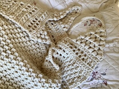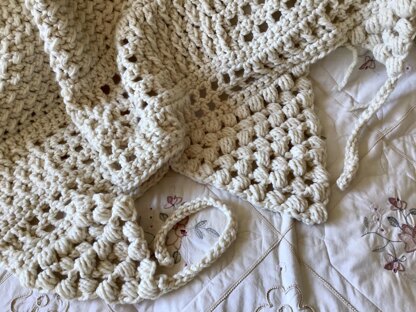 Boho style blanket that is totally reversible. So chic and stylish! Fits any decor in any room. Simple crochet stitches throughout.