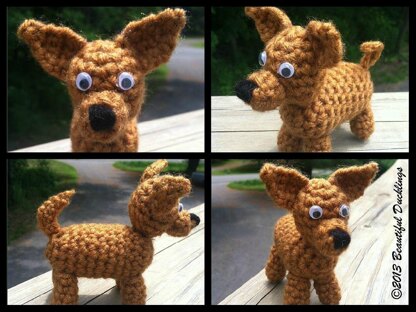 This pattern is for a tiny stuffed Chihuahua, small enough to fit in the palm of your hand.