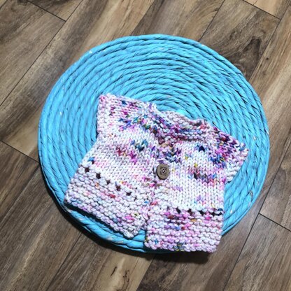 Wee Cupcake 2 is a super-fast to knit baby sweater, and only takes a couple of hours or so to make from start to finish. This is knit top down, and you will only have 2 ends to weave in. The button is Katrinkles.