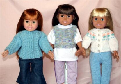 Weekend Casual Sweaters - Knitting Patterns fit American Girl and other 18-Inch Dolls