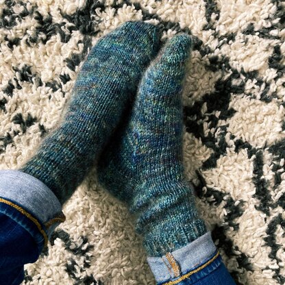 A super cozy pair of worsted weight socks perfect to keeps those toes warm on cool mornings.